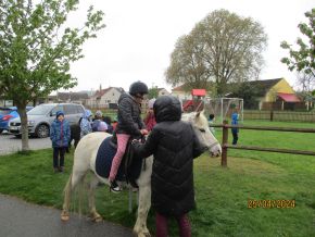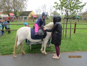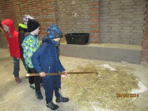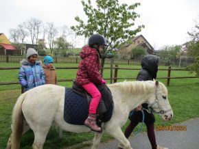 Na Moulisově farmě jsme se seznámili s tím, jak dlouhá doba je, než vyroste obilí a jaká cesta vede k výrobě pečiva, učili jsme se dojit kravičku, stloutkli jsme máslo a ochutnali s chlebem. Na závěr největší radost nám udělalo hřebelcování poníka a svezení na opravdickém koníkovi.