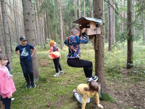 ...pomáháme si vyzkoumat, co se nachází v krmítku...