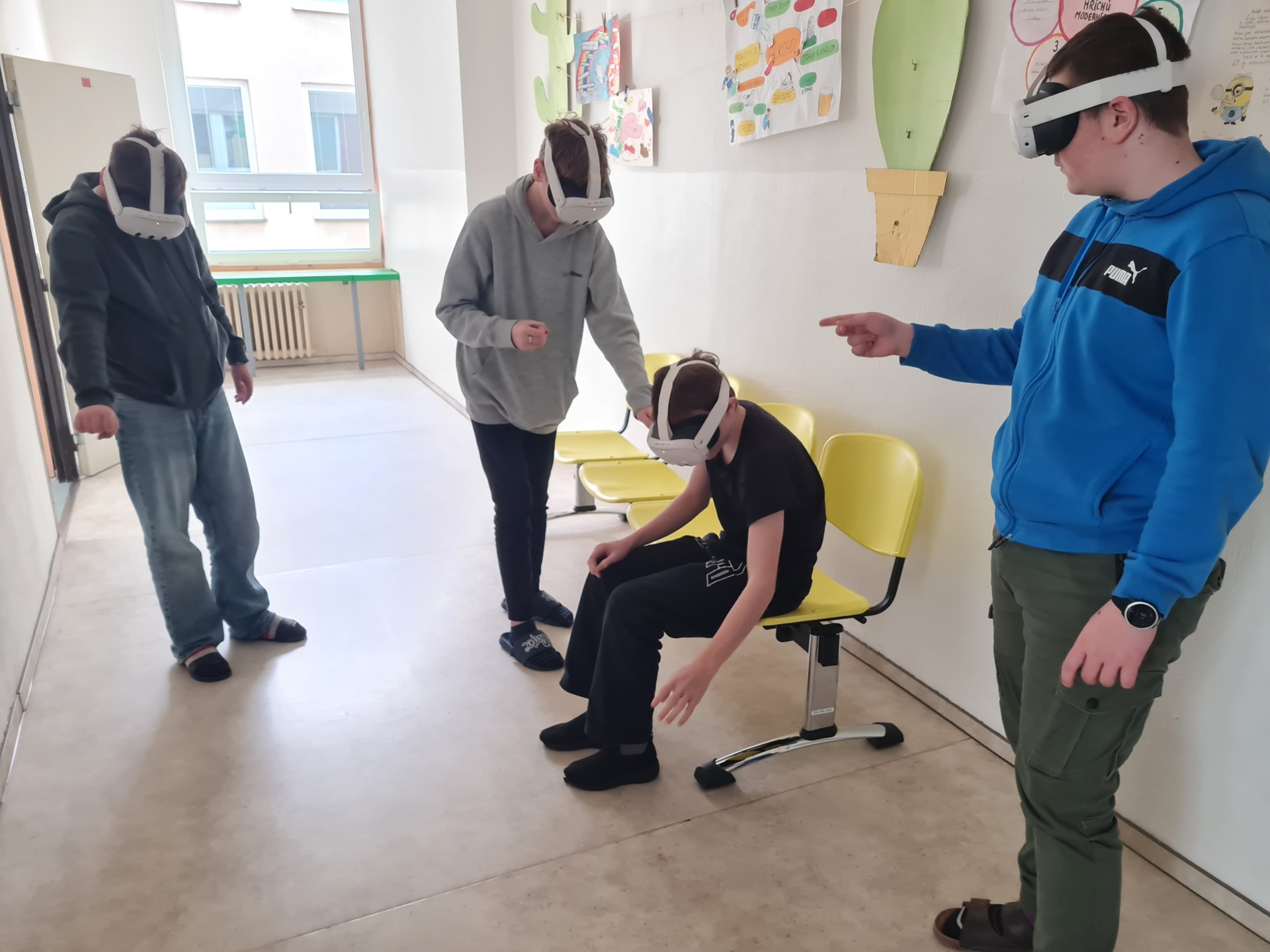 Dnes si žáci vyzkoušeli projekt s VR brýlemi, díky kterým se přenesli do virtuální reality zaměřené na optiku. V interaktivním prostředí zkoumali vlastnosti světla, zejména odraz na zrcadlech a chování paprsků. Pomocí simulací si mohli prakticky ověřit, jak se paprsky odrážejí a jak vznikají obrazy, což jim pomohlo lépe porozumět probírané látce.