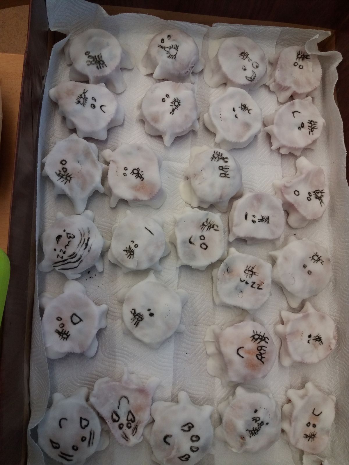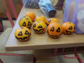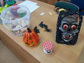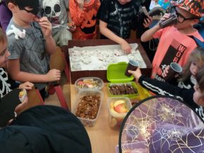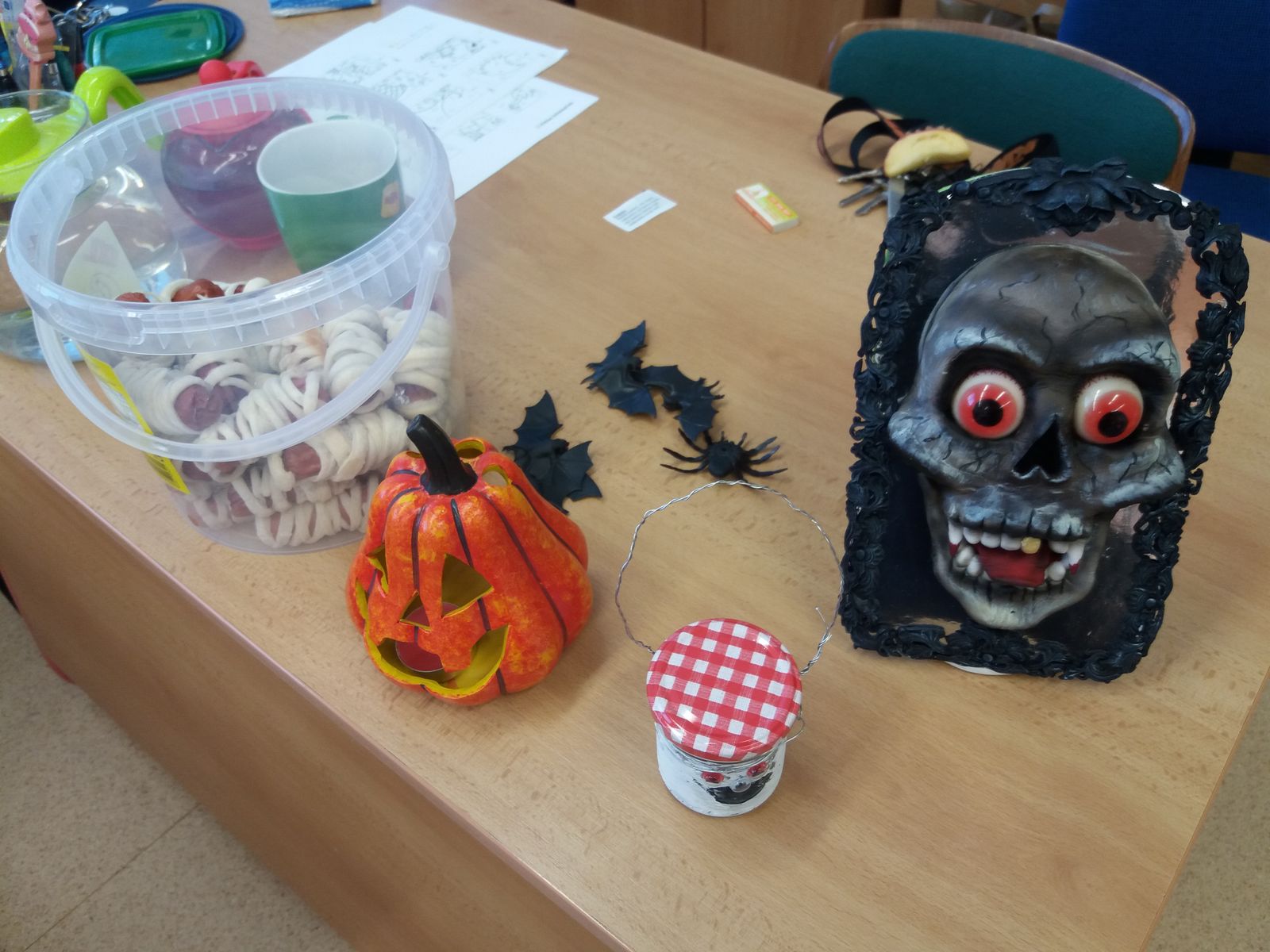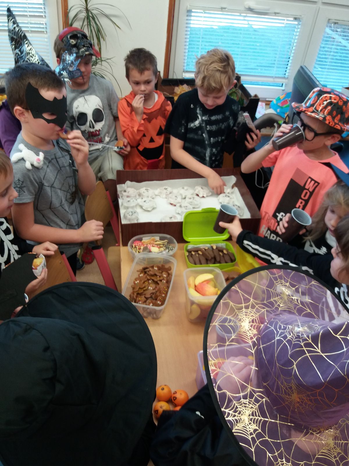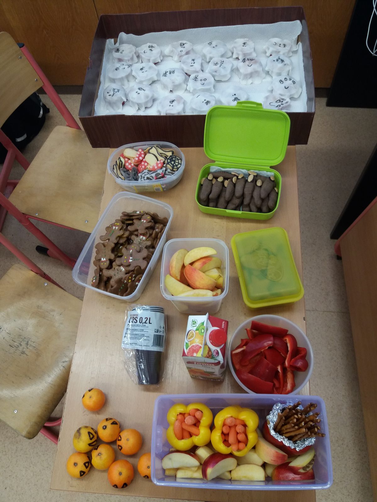 Den plný strašidel a strašidelných dobrot. Pracovali jsme ve skupinkách, učili se příšerky anglicky a zpívali písničku Trick or treat. Děkujeme rodičům za úžasné jedlé výtvory!