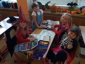 Den plný strašidel a strašidelných dobrot. Pracovali jsme ve skupinkách, učili se příšerky anglicky a zpívali písničku Trick or treat. Děkujeme rodičům za úžasné jedlé výtvory!