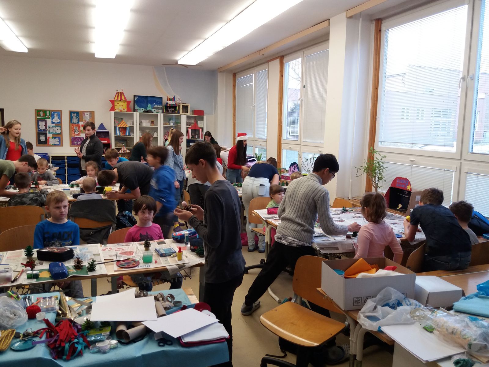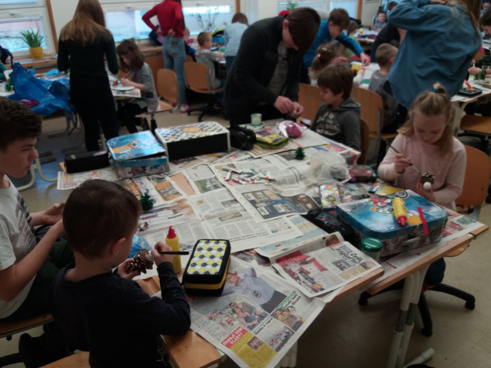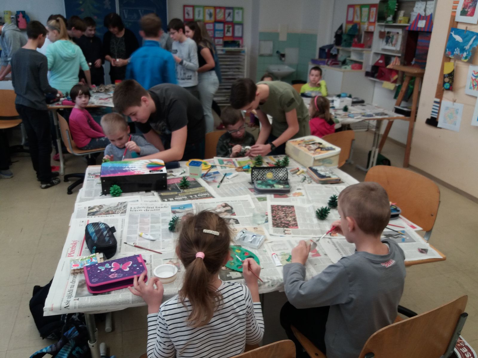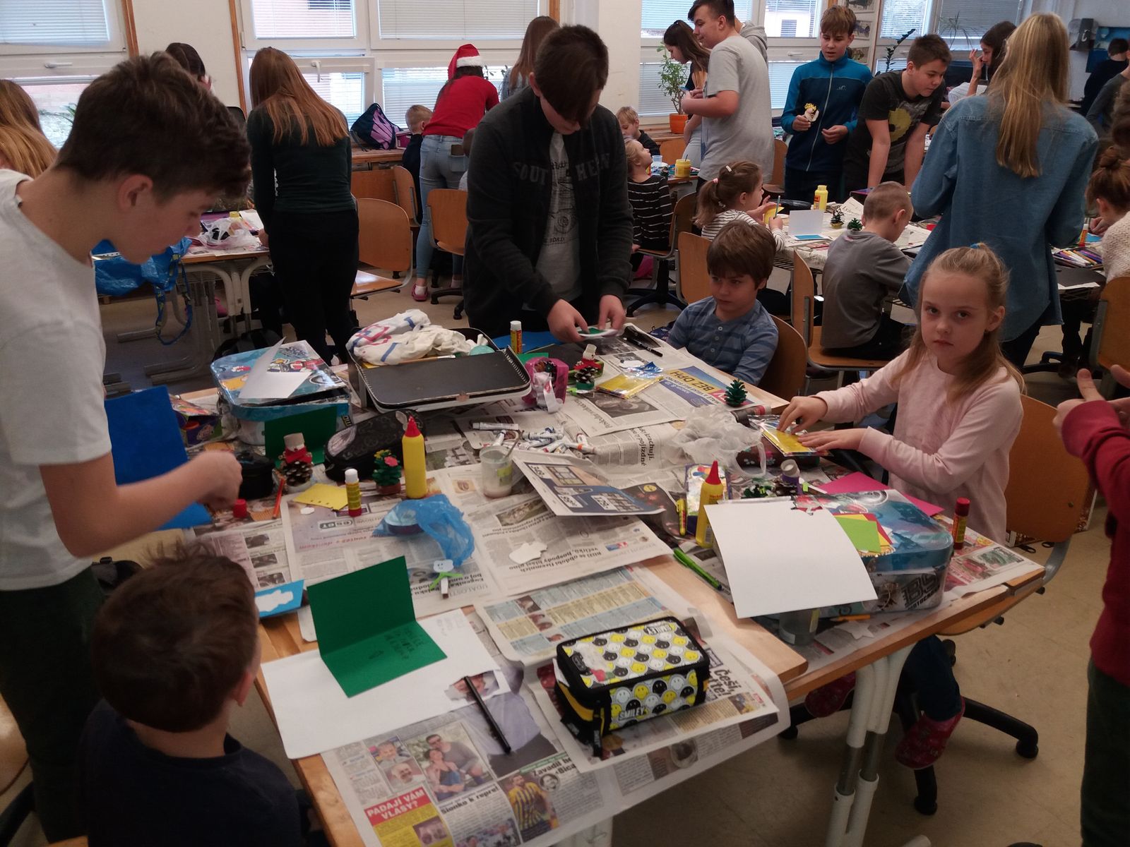 Vánoční těšení začíná... Při vánoční dílně se o nás osmáci pěkně starali a pomohli nám vytvořit vánoční ozdoby.