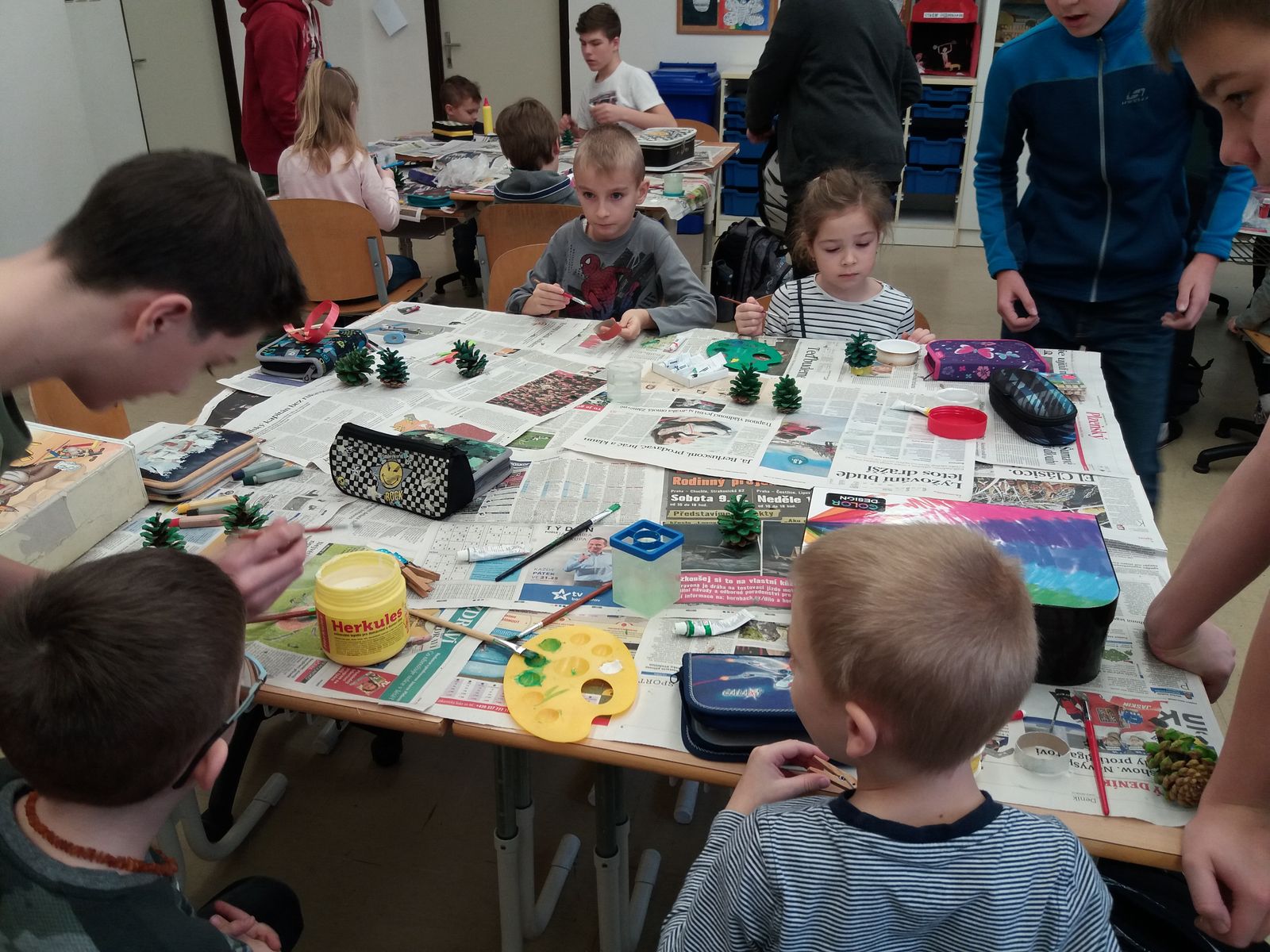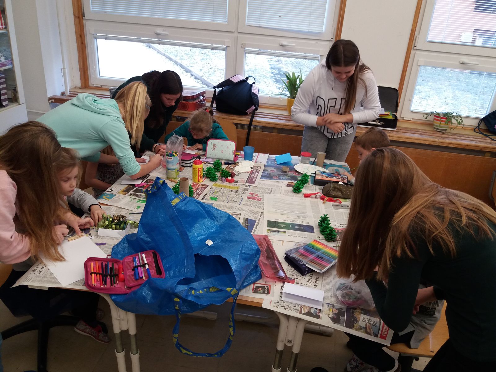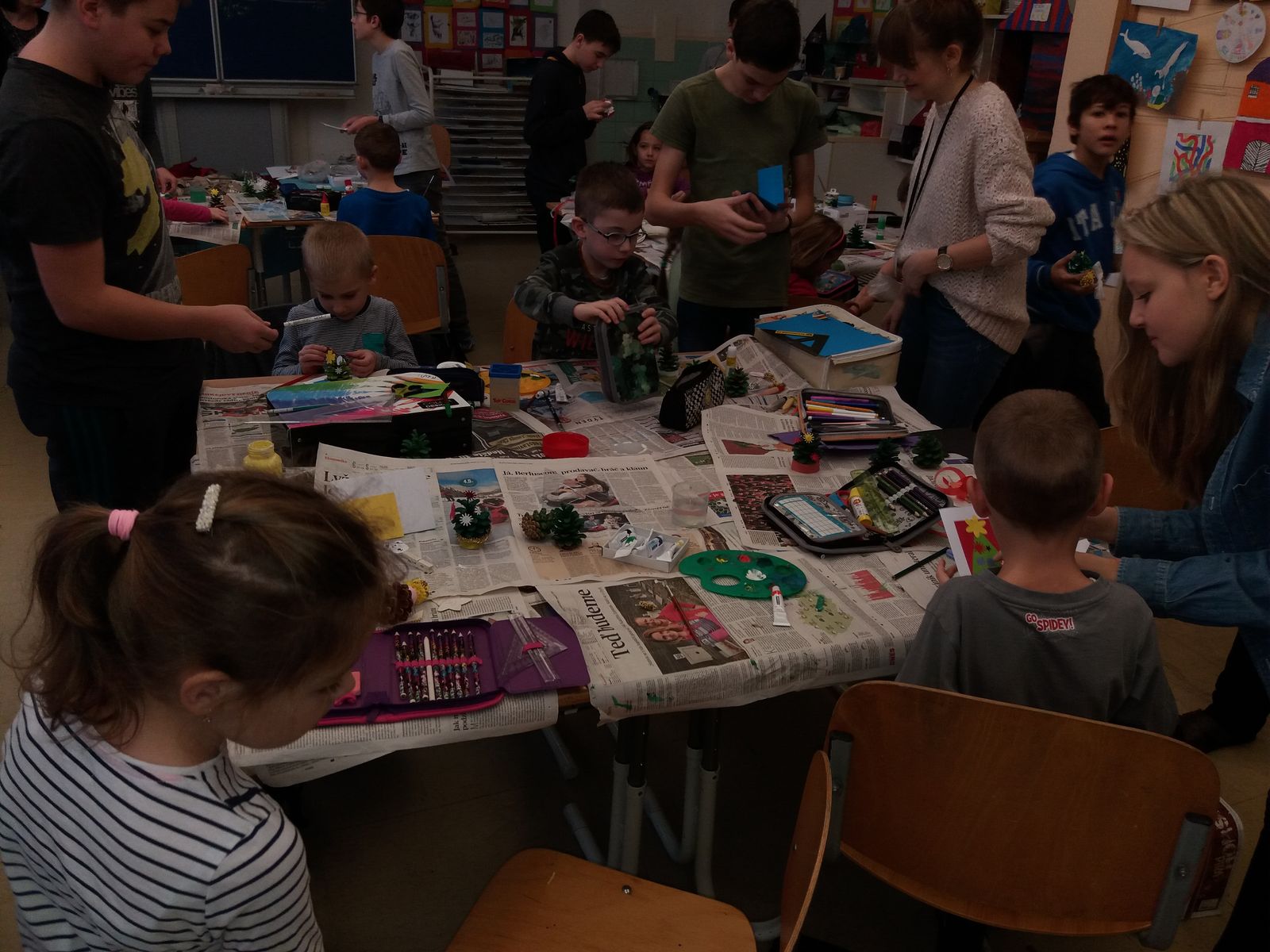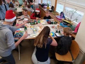 Vánoční těšení začíná... Při vánoční dílně se o nás osmáci pěkně starali a pomohli nám vytvořit vánoční ozdoby.