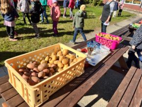 Dne 11. 10. 2024 jsme se sešli na první letošní velké akci na Bramboriádě ŠD a ŠK. Připravily ji pro nás paní vychovatelky v čele s paní vychovatelkou Evou Pojarovou. Plnili jsme úkoly, které souvisely s bramborami. Převáželi jsme je na kolečku, skákali v pytlích, tiskali s bramborovými razítky, vyráběli bramborové panáčky a další zajímavé věci. Celé odpoledne se vydařilo, užili jsme si spoustu zábavy a na závěr jsme byli odměněni diplomem, malou sladkostí a drobným dárkem.
