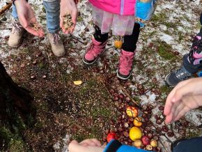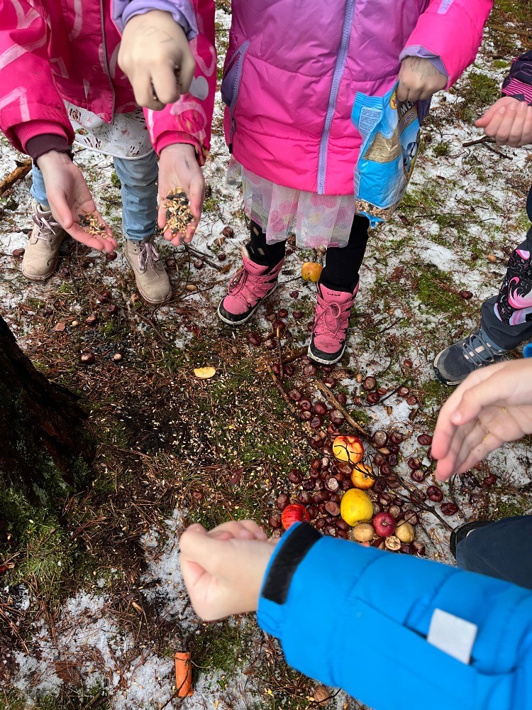 Jako každý rok jsme se i letos na začátku ledna vydali do lesa krmit zvířátka. Paní vychovatelky pro nás připravily zábavné úkoly s tajenkou, které zpestřily celý výlet a přinesly nám spoustu zábavy. Po celou cestu jsme krmili lesní zvířátka vhodným krmením – dávali jsme ho do krmítek, sypali na vhodná místa u stromů a keřů nebo ho zavěšovali na větve. Doufáme, že si zvířátka pochutnala a krmení jim pomůže lépe zvládnout zimní období.