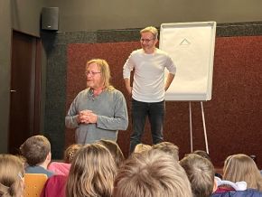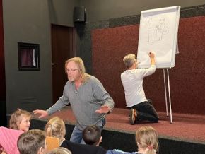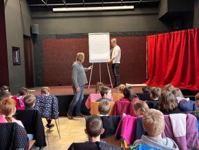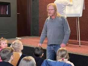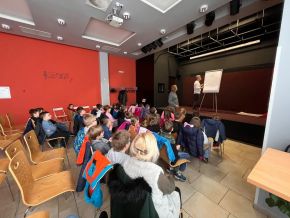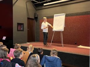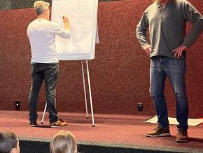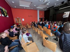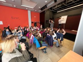 Během března jsme se vystřídali na pořadu v L-klubu O plzeňském znaku. Víte, jak vypadá strašidelná škola, kdo a co se tam učí? Z čeho se skládá plzeňský znak? Jak k němu Plzeň přišla? Tohle a další zajímavosti nám prozradil principál plzeňských strašidel Zdeněk Zajíček a k tomu kreslil obrázky výtvarník Vhrsti. Obrázky jsme si jako milou pozornost odnesli s sebou do školy.