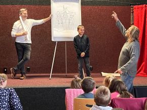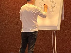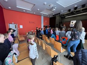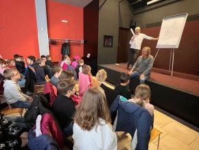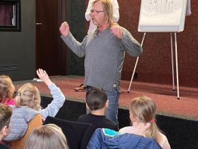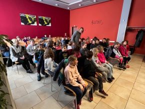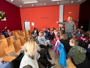 Během března jsme se vystřídali na pořadu v L-klubu O plzeňském znaku. Víte, jak vypadá strašidelná škola, kdo a co se tam učí? Z čeho se skládá plzeňský znak? Jak k němu Plzeň přišla? Tohle a další zajímavosti nám prozradil principál plzeňských strašidel Zdeněk Zajíček a k tomu kreslil obrázky výtvarník Vhrsti. Obrázky jsme si jako milou pozornost odnesli s sebou do školy.