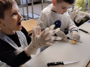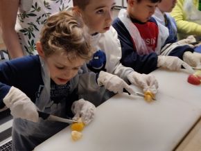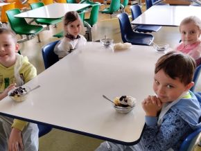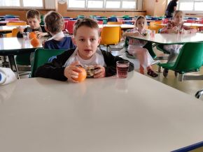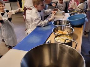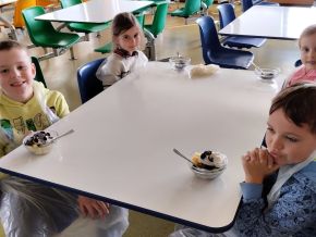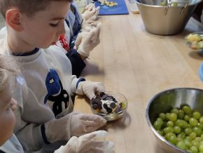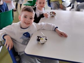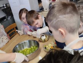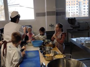 28. března se 4. a 8. oddělení ŠD zúčastnilo projektu Máme rádi jídlo. Ve školní kuchyni, za pomoci profesionálních kuchařek, jsme si připravili ovocný salát. Nakrájeli jsme ovoce, ozdobili ho šlehačkou a posypali čokoládovými křupinkami. Na závěr jsme si moc pochutnali.
