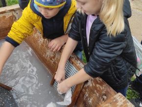 Vypravili jsme se s kroužky ŠD, ŠK na statek U Matoušů. Z vyprávění paní kastelánky jsme se dozvěděli spoustu zajímavých věcí o životě na statku, například jak se pralo velké prádlo, vytvořili jsme si tašku, při jejíž výrobě jsme použili grafickou techniku zvanou linoryt a vyrobili si zvířecí masky. Odpoledne bylo zábavé i poučné.