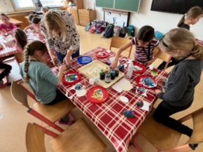 Ve středu 27. 3. 2024 pro nás paní vychovatelky připravily velikonoční dílny. Podle svého zájmu jsme si mohli zvolit z pestré nabídky velikonočních nápadů. V  kuchařské dílně jsme vyrobili chuťovky s vaječnou pomazánkou a kdo měl chuť, mohl ochutnat. Moc nám všem chutnaly. V rukodělné a výtvarné  dílně jsme pletli velikonoční pomlázky a vytvářeli velikonoční dekorace. Všichni jsme měli radost z vlastních výrobků, které jsme si odnesli domů.