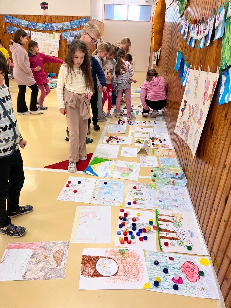Dne 27. 2. 2026 se uskutečnila vernisáž výtvarných prací na téma My a příroda. Byla zde vystavena díla dětí ze všech oddělení ŠD a ŠK, která zaujala svou originalitou a fantazií. Porotu tvořili samotní žáci, kteří po společné prohlídce jednotlivé obrázky ohodnotili a udělovali jim body. Na základě tohoto hodnocení byly v každém oddělení vybrány tři nejzdařilejší práce s nejvyšším počtem bodů. Jejich autoři byli oceněni drobným dárkem. Podívejte se, jak se nám vernisáž povedla!