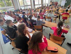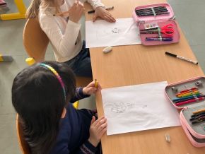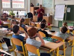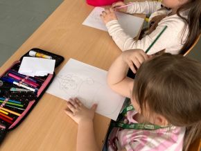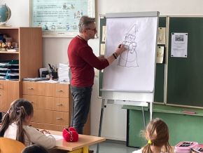 Ve čtvrtek 10. 4. jsme měli možnost v naší školní družině a klubu přivítat výtvarníka nejen večerníčka Bílá paní na hlídání Vhrsti. Seznámil nás s tím, jak večerníček vzniká, kolik lidí na něm pracuje a jak dlouho to trvá. Při vyprávění jsme se s jeho pomocí naučili kreslit postavičky z tohoto seriálu - Bílou paní, čtyřčata, piráta nebo draka. Součástí workshopu bylo i promítání některých dílů seriálu. Odpoledne nám uběhlo jako voda.