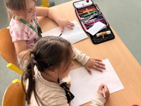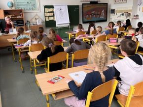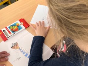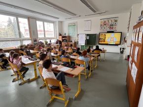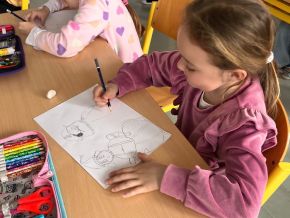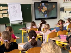 Ve čtvrtek 10. 4. jsme měli možnost v naší školní družině a klubu přivítat výtvarníka nejen večerníčka Bílá paní na hlídání Vhrsti. Seznámil nás s tím, jak večerníček vzniká, kolik lidí na něm pracuje a jak dlouho to trvá. Při vyprávění jsme se s jeho pomocí naučili kreslit postavičky z tohoto seriálu - Bílou paní, čtyřčata, piráta nebo draka. Součástí workshopu bylo i promítání některých dílů seriálu. Odpoledne nám uběhlo jako voda.