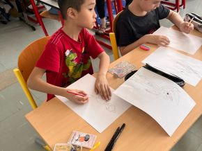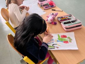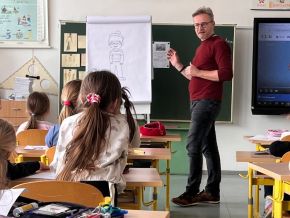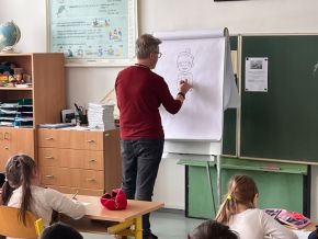 Ve čtvrtek 10. 4. jsme měli možnost v naší školní družině a klubu přivítat výtvarníka nejen večerníčka Bílá paní na hlídání Vhrsti. Seznámil nás s tím, jak večerníček vzniká, kolik lidí na něm pracuje a jak dlouho to trvá. Při vyprávění jsme se s jeho pomocí naučili kreslit postavičky z tohoto seriálu - Bílou paní, čtyřčata, piráta nebo draka. Součástí workshopu bylo i promítání některých dílů seriálu. Odpoledne nám uběhlo jako voda.