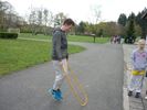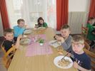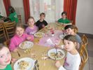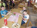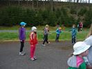 Na dopolední činnost jsme dětem naplánovali jejich oblíbenou soutěž družstev. Soutěžilo se v těchto disciplínách: hod na cíl, předávání míče na rychlost, opičí dráha, člunkový běh - štafeta, přenášení míčku na pálce, hod do basketbalového koše, skok do dálky, kop do branky, přeskoky přes švihadlo a vytrvalostní běh. Družstvo tvořily děti z různých ročníků, starší pomáhaly a povzbuzovaly ty menší. Všichni si dostatečně zasportovali. A jak to dopadlo? Uvidíme ....