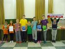 A večer vyhlášení dopolední soutěže družstev - veliký dík patří šikovným osmákům (první foto), kteří vypomáhali na několika stanovištích. Fotografie následují za sebou tak, jak se jednotlivá družstva umístila na 1. - 13. místě.