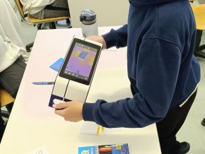 V hodině fyziky se žáci věnovali tématu tepelná vodivost a měli možnost pracovat s termokamerami a speciálními animacemi na iPadech. Díky těmto nástrojům mohli lépe porozumět tomu, jak se teplo šíří různými materiály, a nahlédnout do metod, které vědci používají při svém výzkumu.