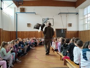 V pondělí jsme ve školní tělocvičně navštívili akci Dravci, sovy a člověk. Odnesli jsme si spoustu zážitků, dravci i sovy nám přelétávali nad hlavami a někteří si je i podrželi na ruce. Také jsme se dozvěděli hodně zajímavostí a nových informací. Moc se nám to líbilo!