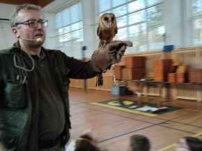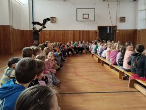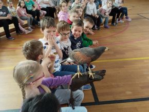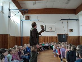 V pondělí jsme ve školní tělocvičně navštívili akci Dravci, sovy a člověk. Odnesli jsme si spoustu zážitků, dravci i sovy nám přelétávali nad hlavami a někteří si je i podrželi na ruce. Také jsme se dozvěděli hodně zajímavostí a nových informací. Moc se nám to líbilo!
