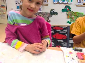 Při pracovním vyučování jsme modelovali zvířátka. Některá se těm skutečným opravdu hodně podobala. A i když nějaké zvířátko vypadalo malinko jinak než ve skutečnosti, vůbec to nevadilo. Ze všech jsme měli radost a  ,,sochaření" nás moc bavilo.