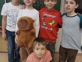 Zde jsou zase někteří z našich oslavenců a také nová plyšová spolužačka kapybara :))