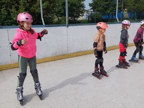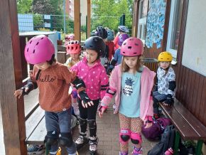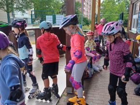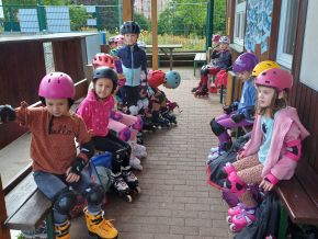 Poslední květnový den jsme vyrazili do Sport parku na Lochotíně. Počasí nám naštěstí přálo a my si tak mohli dopolední kurz krásně užít. Někteří z nás už od začátku bruslili jako profíci, někteří jsme na bruslích stáli úplně poprvé. Ale protože jsme šikulky, na konci už jsme bruslili všichni bez jakékoli pomoci.