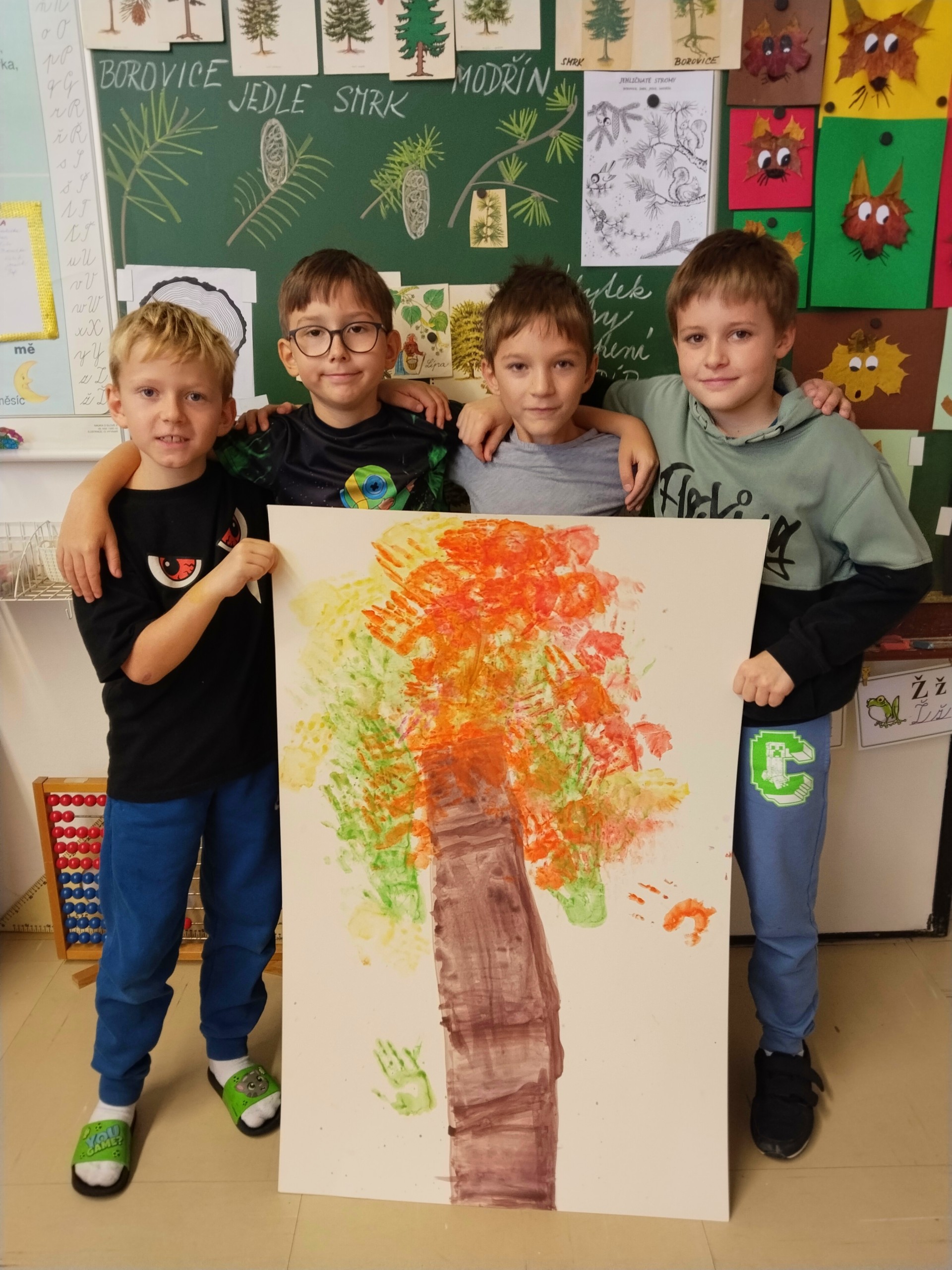 Při DNU STROMŮ jsme se učili rozeznávat jednotlivé stromy, povídali si o jejich významu a využití, zasoutěžili jsme si při poznávačce, vyplňovali pracovní listy a natiskali jsme si podzimně zbarvené listnáče.