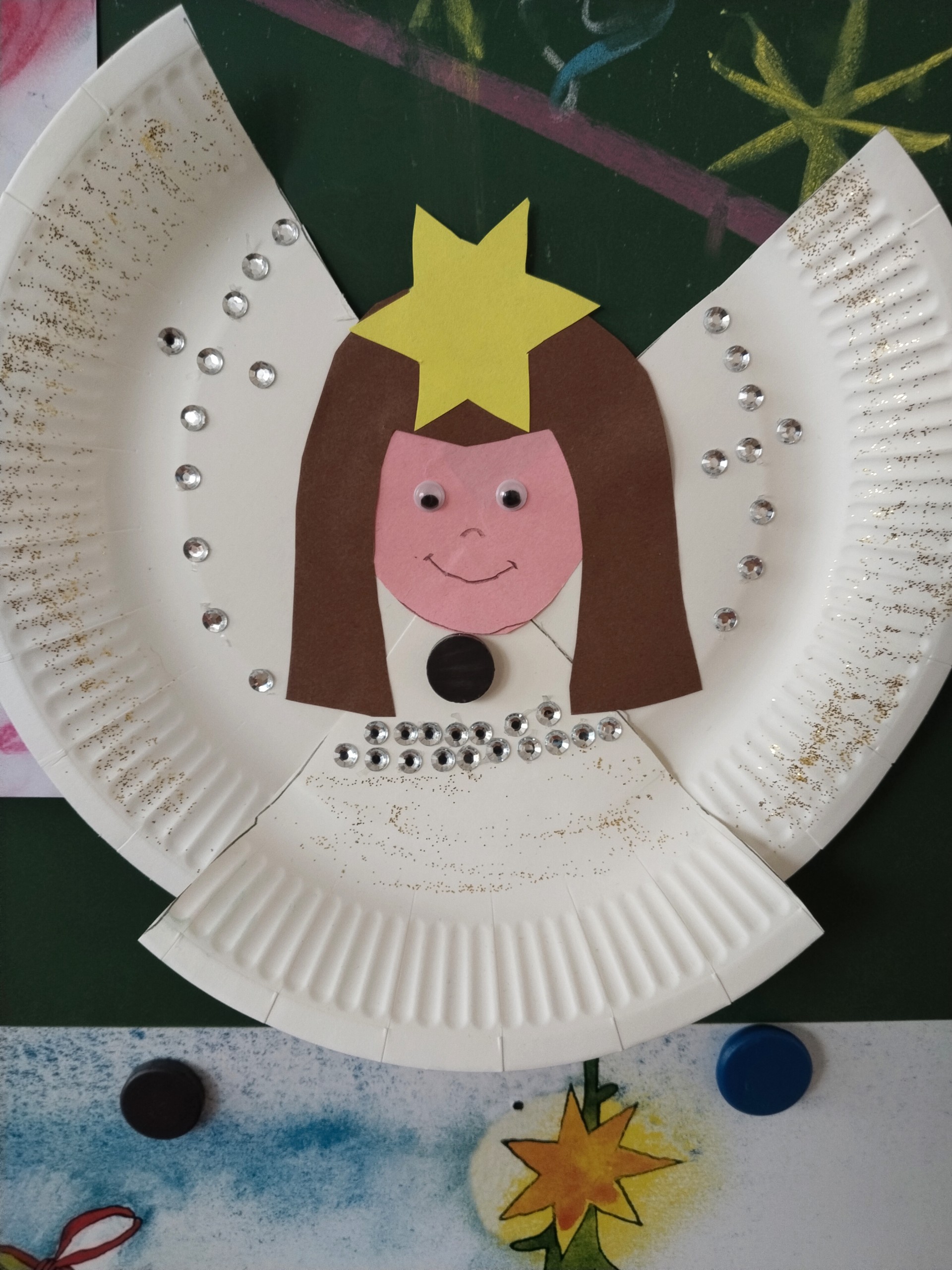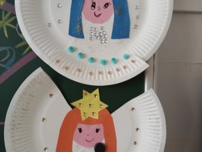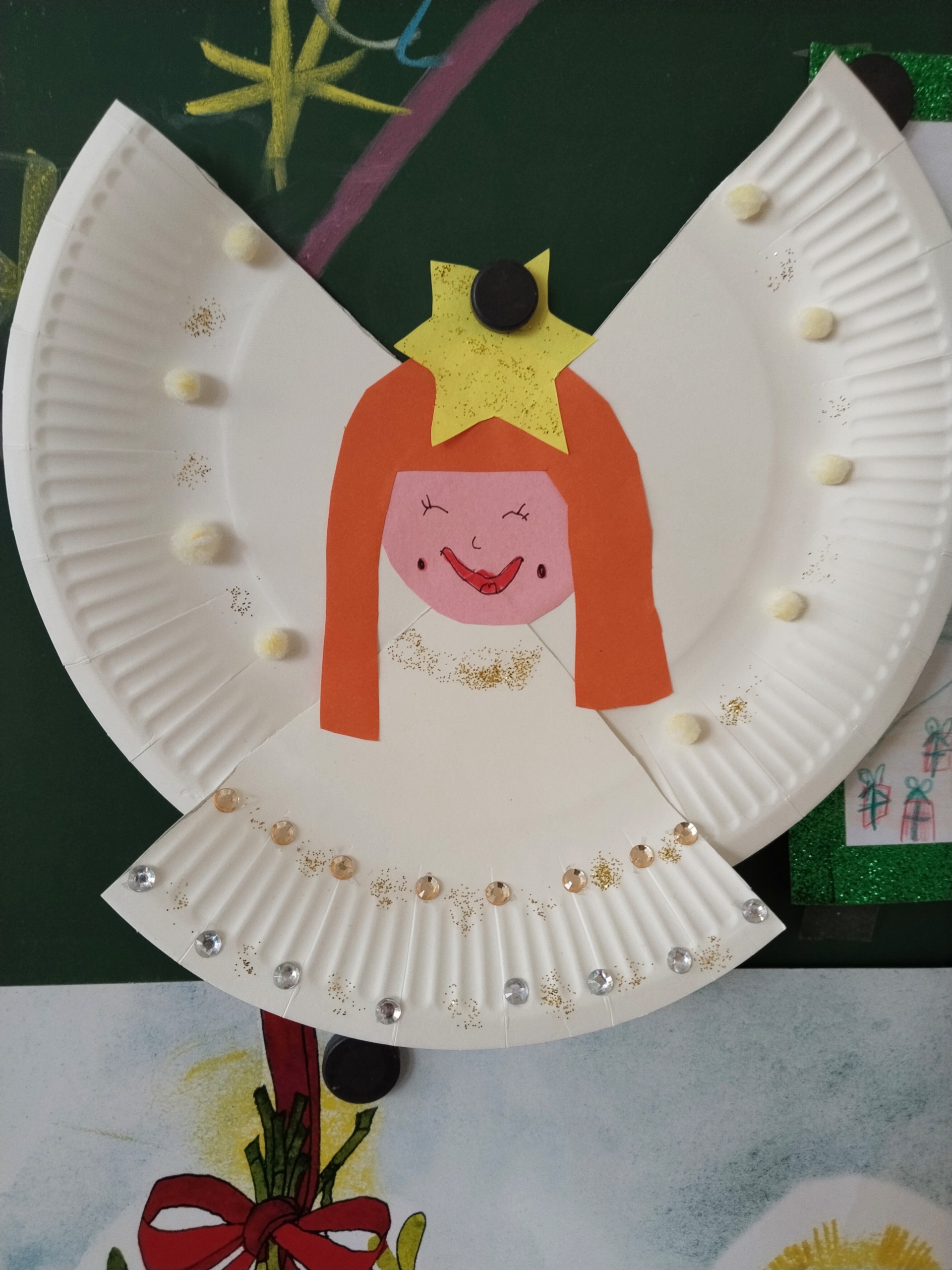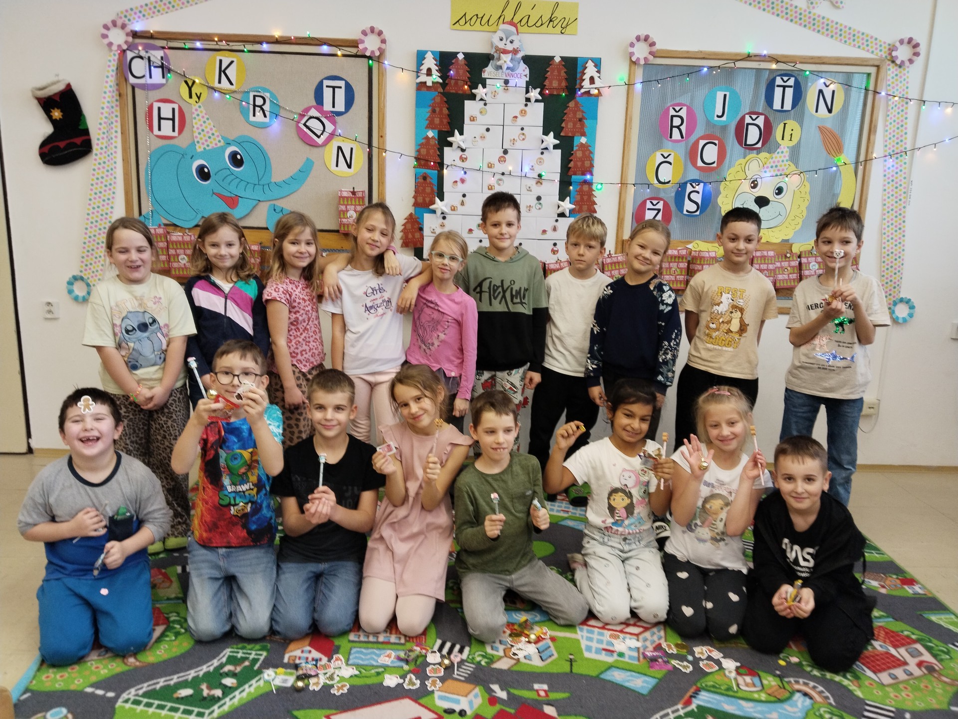 Aby nám čas do Vánoc hezky utíkal, losujeme každý den z vánoční punčochy jména a otevíráme očíslované pytlíčky s malými dárečky. Strom máme poskládaný z obálek s přáníčky, která si odneseme domů. Také si ještě necháme obálky orazítkovat na Ježíškovské poště na radnici. Už zbývá jen pár posledních jmen a konečně budeme vylosováni všichni!!! A kromě počítání kalendáře také vyrábíme vánoční dekorace a přáníčka. Třeba tyhle krásné andílky.