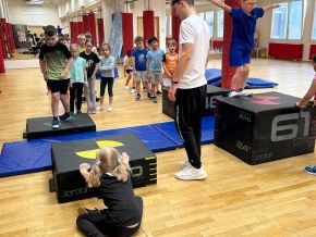 V rámci sportovní přípravy jsme si vyzkoušeli ukázku sportu parkour na Krašovské......