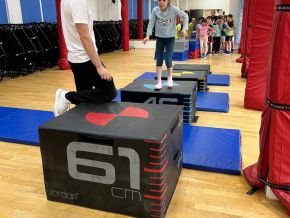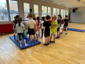 V rámci sportovní přípravy jsme si vyzkoušeli ukázku sportu parkour na Krašovské......