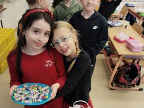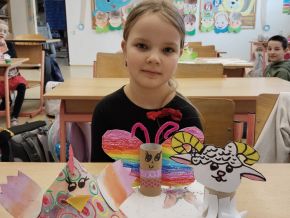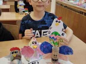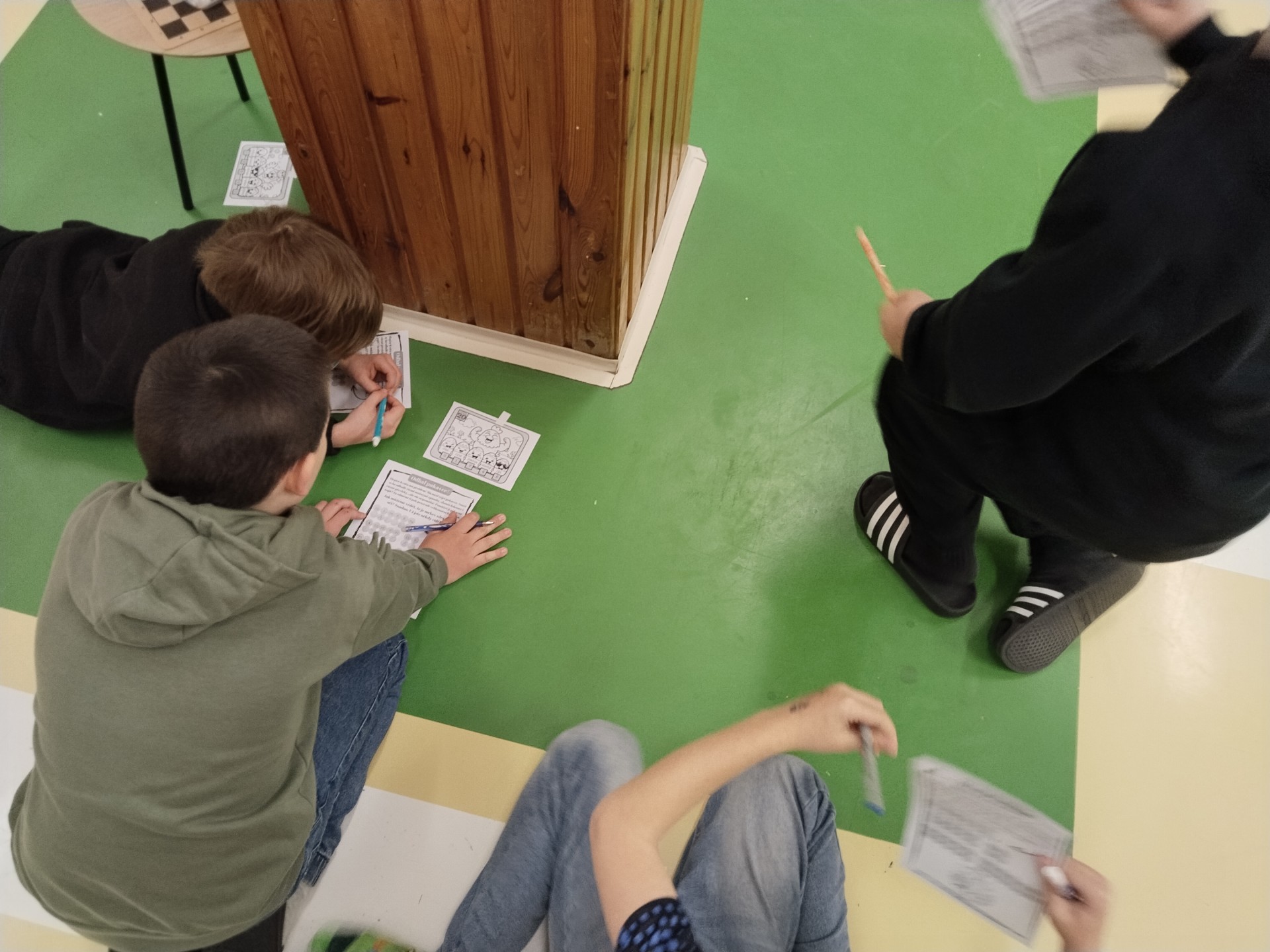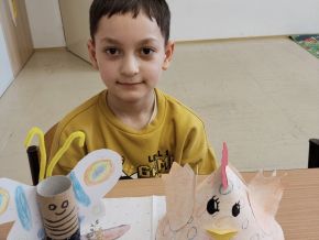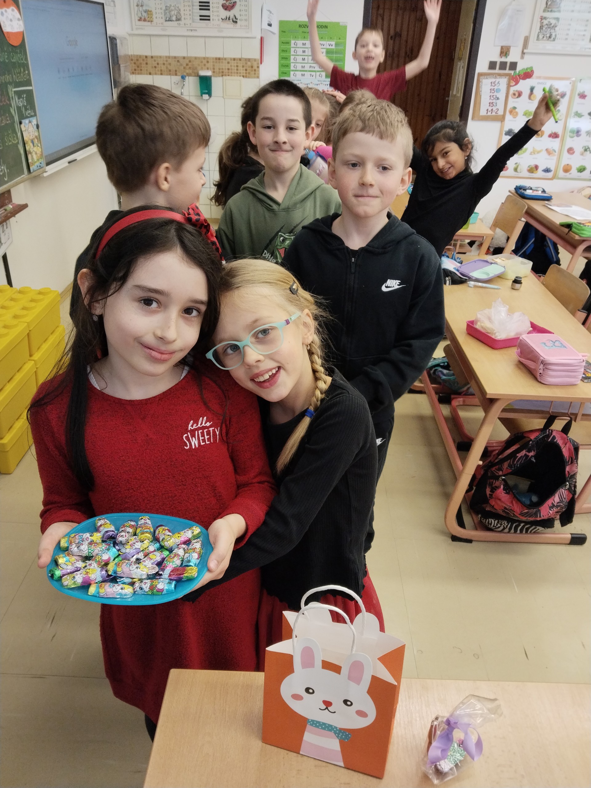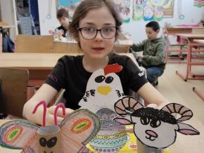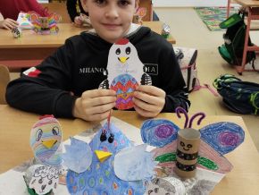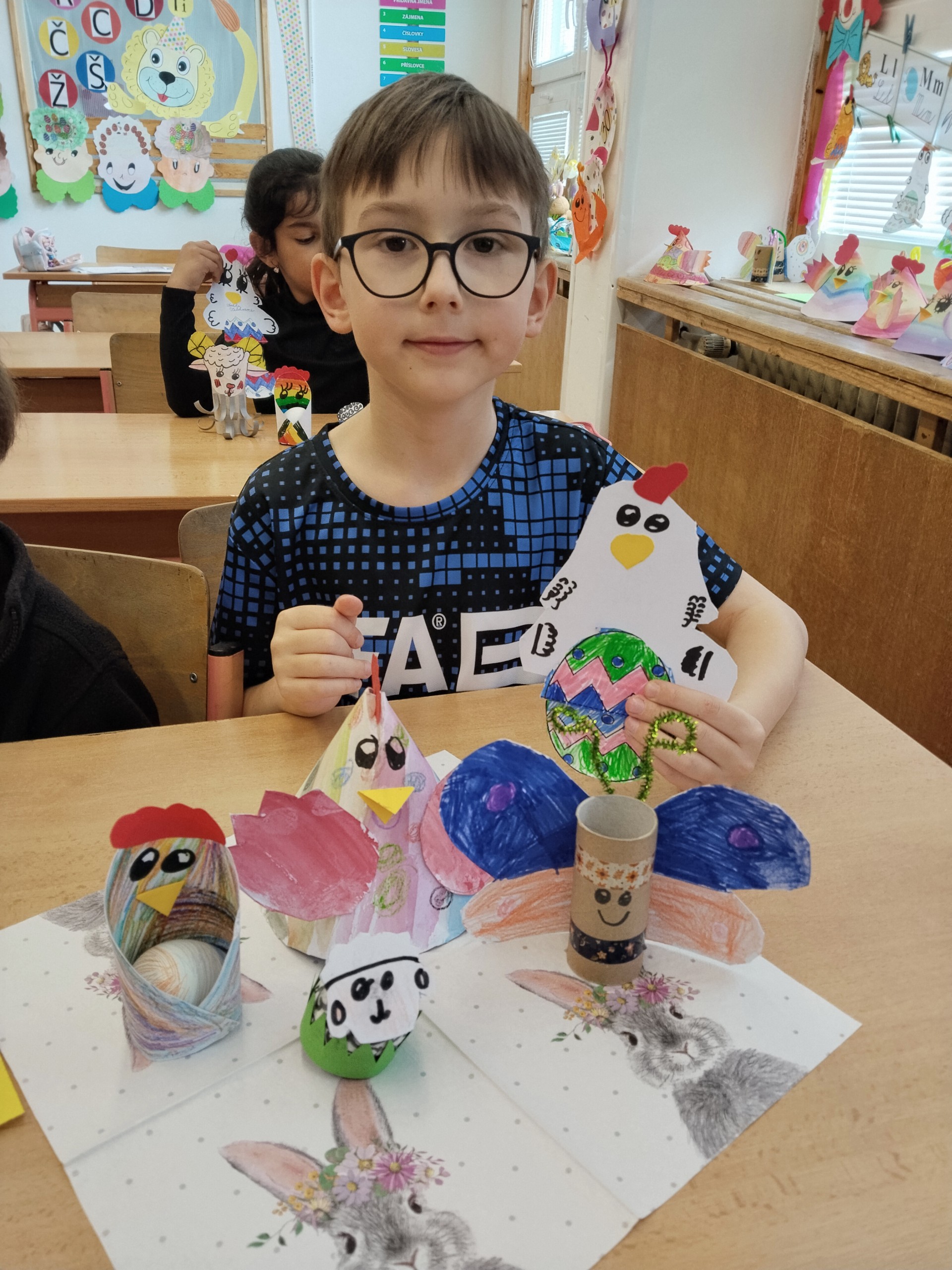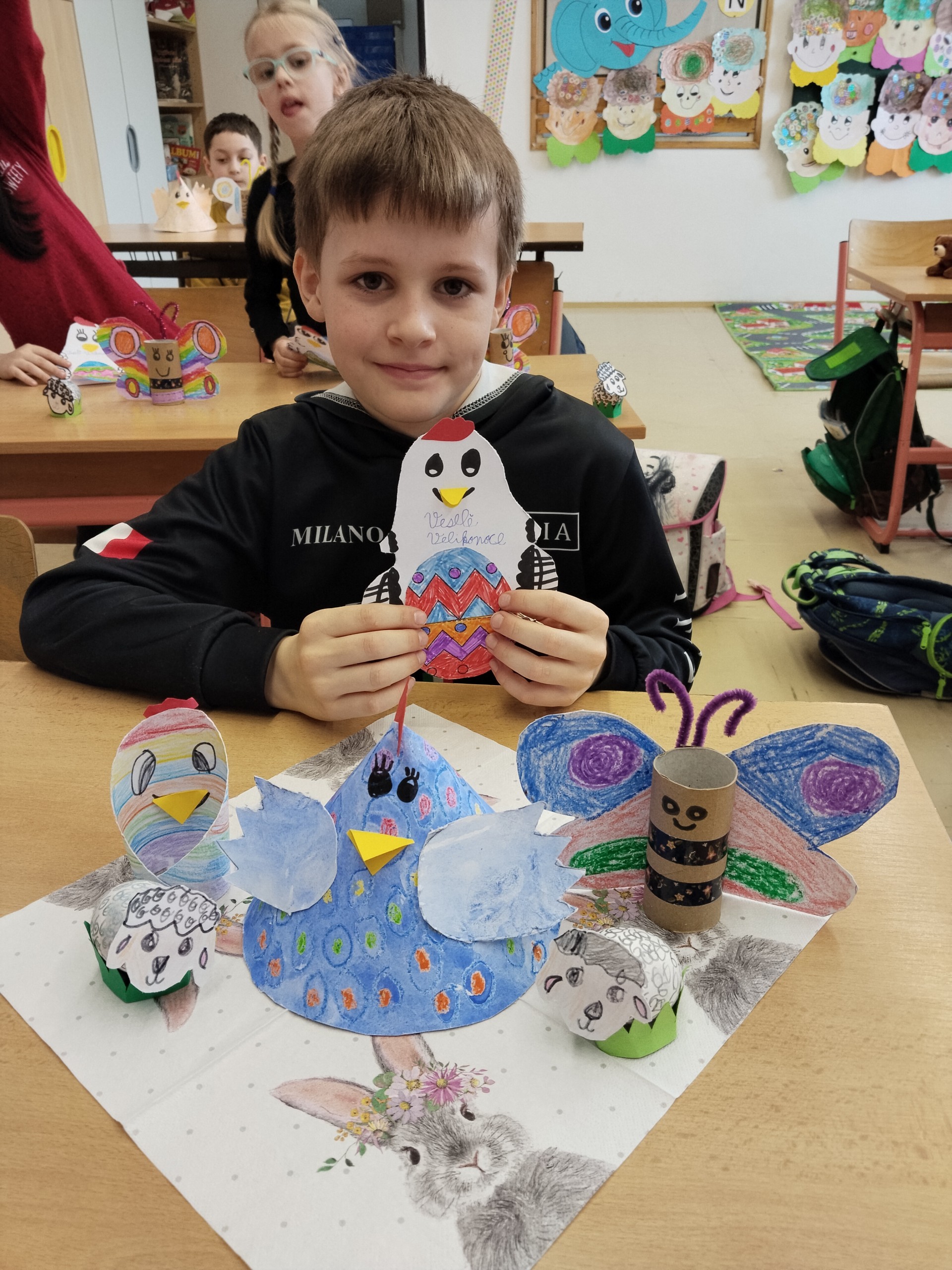 Středeční dopoledne bylo celé soutěžní a hlavně předvelikonoční. Místo matematiky jsme počítali příklady pro ,,slepičí " týmy a sestavovali kurníky. Pak jsme řešili vajíčkové úlohy - za každou správně vypočítanou jsme dostali jedno vajíčko do košíku. Po matematice přišla češtinářská ,,běhačka". Pátrali jsme po pukavcích, kteří se připletli mezi správně napsaná vajíčka. Za vyluštění tajenky jsme dostali jedničku s vajíčkem :))). Nakonec jsme si popovídali o tradicích, které k Velikonocům patří a dostali za své snažení odměny. Děkujeme Andrejce Ouředníkové, která pro všechny děti přinesla sladké překvapení.
