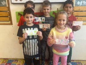 7. října jsme uskutečnili projekt Finanční gramotnost. Přečetli jsme si a zahráli pohádku o dědečkovi, který měnil věci a zvířátka. Počítali jsme mince a slovní úlohy. Nakonec jsme navrhli vlastní peníze a udělali kasičku na spoření.