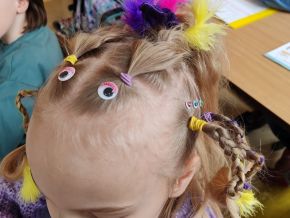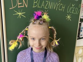 31. 3. proběhl u nás ve škole Den šílených účesů. Většina dětí si na hlavě něco zábavného vytvořila a ani paní učitelka s paní asistentkou nezůstaly pozadu. Na závěr jsme hlasovali o 3 nejbláznivější účesy....byl to den plný zábavy....