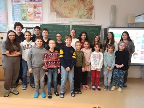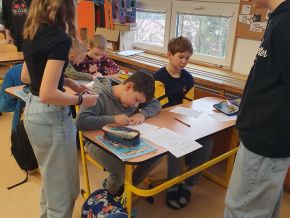 Začátkem prosince 2024 proběhlo ve třídách 8. C a 3. C vrstevnické učení v rámci hodin anglického jazyka. Žáci z 8. C chystali několik týdnů vyučovací hodinu pro mladší spolužáky ze 3. C. Jejich společným tématem bylo části lidského těla. Osmáci si pro třeťáky připravili několik aktivit (písničky, hry, pracovní listy, osmisměrku), kterými je potom během společné hodiny provedli. Hodnotíme tento projekt jako velmi povedený.