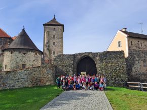 Výlet na hrad Švihov se vydařil po všech stránkách - řada dětí poprvé v životě navštívila gotický hrad, seznámili jsem se se způsobem života středověkých lidí a o svém životě nám vtipně vyprávěl "sám" Karel IV.
