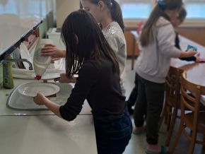 V hodině pracovní výchovy měly děti za úkol připravit pokrm studené kuchyně. Ve skupince se domluvily, zda to budou jednohubky nebo chlebíčky, zda vytvoří pomazánku a kdo co přinese. Společně pak všichni tvořili, pochutnávali si i uklízeli. Byl to příjemný zážitek a děti mají chuť se doma aktivně účastnit přípravy jednoduchých pokrmů. Využijete toho, rodiče? :)
