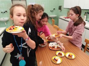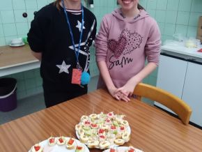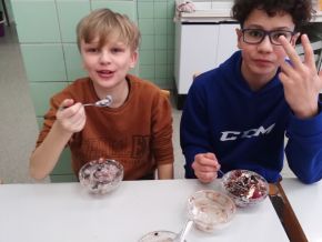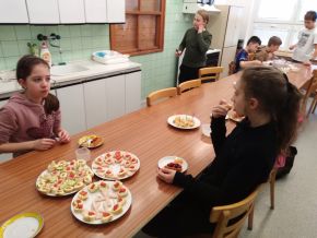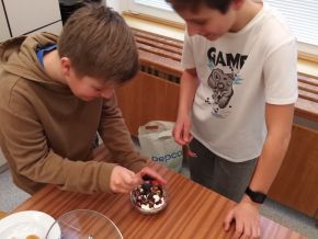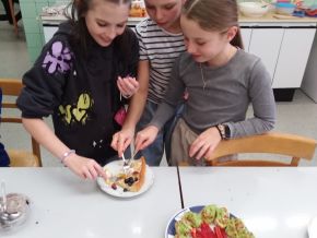 V březnu jsme navštívili cvičnou školní kuchyni a ve skupinkách připravovali libovolné pohoštění ze studené kuchyně. Na závěr všechny kuchařské party prezentovaly svůj výtvor a navzájem se mezi sebou pohostily. Z fotek můzete vidět, že nabídka byla opravdu pestrá a všichni si - naštěstí bez následků :)) - užili jak přípravu, tak konzumaci.