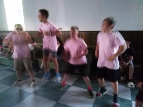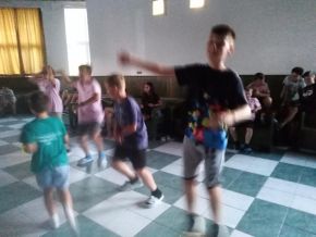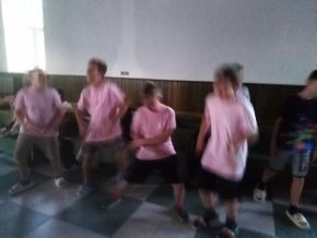 Důležitou součástí posledních závodů byly piškoty. A k tomu naše dovednost co nejrychleji je rozkousat a spolknout, protože prázdná pusa byla startovní signál pro dalšího závodníka. K získání piškotu bylo třeba vylosovat si u misky správného smajlíka - pokud se mračil, běželo se zpět s prázdnou. Po vysbírání všech trofejních piškotů se počítali smajlíci a zapisovaly body. Po obědě proběhla společná hra v areálu, ve které se spojili zástupci všech tříd od 1. do 9. ročníku. Vyhlášení všech soutěží, luštění, křížovek, kvízů a dalších aktivit proběhlo před závěrečnou tečkou našeho soustředění - před diskotékou. Ta se velmi vydařila a všichni opravdu :) poctivě tančili - někteří skoro jak o život :))). Fotky odpovídají rychlosti tance :))) a osvětlení v sále - takže jsou jedna velká šmouha, ale při troše štěstí se dají tanečnice a tanečníci identifikovat.