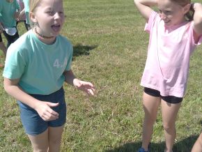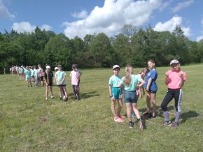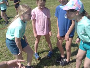 Ve čtvrtek jsme po rozcvičce a snídani vyrazili na louku za Střelské Hoštice a pustili se do posledního soutěžního dne. Čekaly nás další hry s olympijskými úkoly. Nejprve jsme obíhali trasu s obrázky siluet sportovců, hádali, jaký sport znázorňují, a po časovém limitu jsme se snažili v družstvech zapsat co nejvíc sportů, které jsme si zapamatovali. Během odpočinku před další soutěží jsme dostali bonusový úkol - vymyslet básničku se sportovní - nejlépe olympijskou - tématikou. Většina družstev úkol skvěle splnila a povedly se opravdu pěkné básničky. Tady jsou ukázky a ,,chvilka poezie" :) :