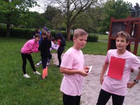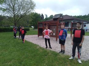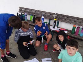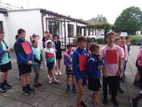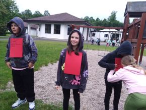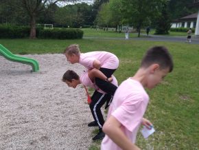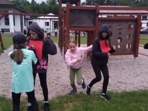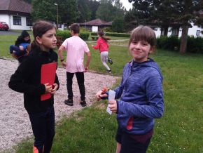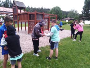 Ve středu jsme pokračovali v našem olympijském závodění. Nejprve jsme sbírali po areálu lístečky s informacemi o olympiádě, ke kterým nás naši ,,němí" kapitáni museli navigovat pomocí pantomimy a námi vytvořených mapek. Když jsme nasbírali všechen ,,studijní materiál", bylo třeba si informace přečíst a zapamatovat, protože po svačině soutěž pokračovala a kdo víc věděl, ten byl úspěšnější. Odpovědi jsme zapisovali na naše olympijské maskoty, kteří v případě, že někdo neznal odpověď, mohli jako jediní z družstva napovídat a poradit. Po obědě a poledním odpočinku jsme vyrazili kolem Rudolfova kamene do Horažďovic. Večer proběhlo slavnostní vyhlášení vítězů dopolední soutěže - i s nástupem při olympijské hymně.
