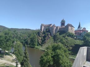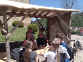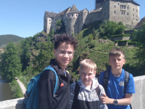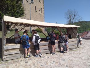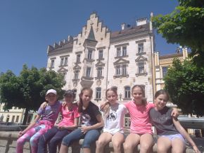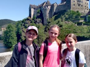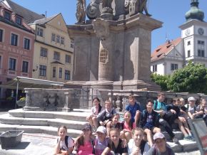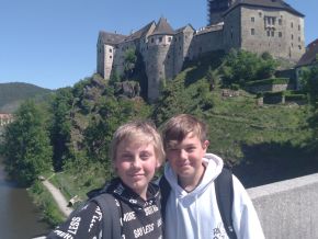 15. května jsme se vydali na ekologickou exkurzi do Svatošských skal a do města Loket. Naučnou stezkou z karlovarského Doubí jsme došli ke Svatošským skalám. Zkamenělý svatební průvod na břehu řeky Ohře jsme si prohlédli, představovali jsme si pod kamennými sloupy jednotlivé svatebčany a připomněli si pověst o víle, která se pomstila za nedodržení slibu. Po odpočinku a občerstvení nás čekala cesta podél Ohře, která nás krásnou krajinou dovedla až do města Loket. Tajemství zvláštní načervenalé barvy na kmenech stromů jsme odhalili až následně ve škole - koho by zajímal důvod tohoto zbarvení, může se na nás obrátit :).Prošli jsme si náměstí, viděli jsme morový sloup, přilehlé uličky - i tu nejužší vedoucí okolo Černé věže, prohlédli jsme si historické domy, objevovali na fasádách různé znaky, symboly a nápisy. Čekání na otevření infocentra jsme využili ke hře na středověký jarmark :). Obsadili jsme prázdné stánky a nabízeli zajímavosti vylovené z našich batohů :). Po nákupech suvenýrů jsme se vydali přes most k autobusu a cestou se ještě pokochali pohledem na nádherný hrad. Výlet byl vydařený, počásí vyšlo dokonale, další parádní akce je za námi!