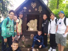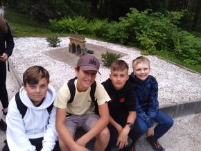 12. června jsme se vypravili na náš poslední společný výlet. Tentokrát jsme navštívili Mariánské Lázně. Nejprve jsme dojeli do parku miniatur Boheminium. U parkoviště před hotelem Krakonoš jsme si prohlédli sochy pohádkových postav. V areálu Boheminia jsme si pak společně i samostatně prohlíželi nejrůznější zajímavé stavební objekty ze všech krajů naší země. Znovu jsme si prohlédli hrad Loket, který jsme před nedávnem viděli i v jeho skutečné velikosti, pod zmenšeninou Řípu jsme zavzpomínali na naši loňskou výpravu na ten skutečný, vyfotili jsme se i s naším plzeňským kostelem a pivovarskou bránou a obešli jsme další různé hrady, zámky a rozhledny. V areálu jsou kromě miniatur také výběhy pro zvířata a dětské hřiště, takže i tahle místa jsme si stačili užít. Je pravda, že hlazení zvířátek a houpačky zaujaly spíš děvčata. Kluci zase ocenili odpočinkovou zónu a zodpovědně relaxovali :). Pak jsme se přemístili do centra města. Prohlédli jsme si obě kolonády, ochutnali - velmi opatrně:) - některé z pramenů, přečetli si, jaké léčebné účinky mají, a pak už jsme čekali na hudební produkci zpívající fontány. Skladba Dobytí ráje se nám moc líbila. Po skončení skladby jsme si šli nakoupit a pochutnat si na lázeňských oplatkách. Počasí nás podle předpovědi sice strašilo přeháňkami, ale naštěstí zůstalo jen u strašení a my si užili dokonce i sluníčko. Na fotkách můžete vidět, jak krásně nám náš poslední výlet vyšel.