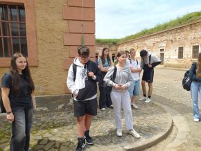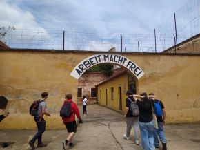 Po příjezdu do Terezína jsme se společně vydali na prohlídku centra města, které za 2. sv. války sloužilo jako židovské ghetto. Navštívili jsme židovský hřbitov a krematorium, kde jsme shlédli stálou expozici o úmrtnosti a pohřbívání v ghettu. Poté jsme se přesunuli do Muzea ghetta, kde jsme viděli nejen výstavu dochovaných předmětů denní potřeby, ale také kresby a básně, které nejen děti vytvořily během svého pobytu v ghettu. Následně jsme zamířili do Malé pevnosti, kde jsme navštívili jednotlivé části areálu, včetně cel, kde byli vězni drženi, a prohlédli si různé expozice věnované životním podmínkám vězňů, jejich osudům a událostem té doby. Paní průvodkyně nám detailně vysvětlila, jakým způsobem byla pevnost používána, a poskytla nám mnoho zajímavých a zároveň děsivých informací o každodenním životě vězňů.