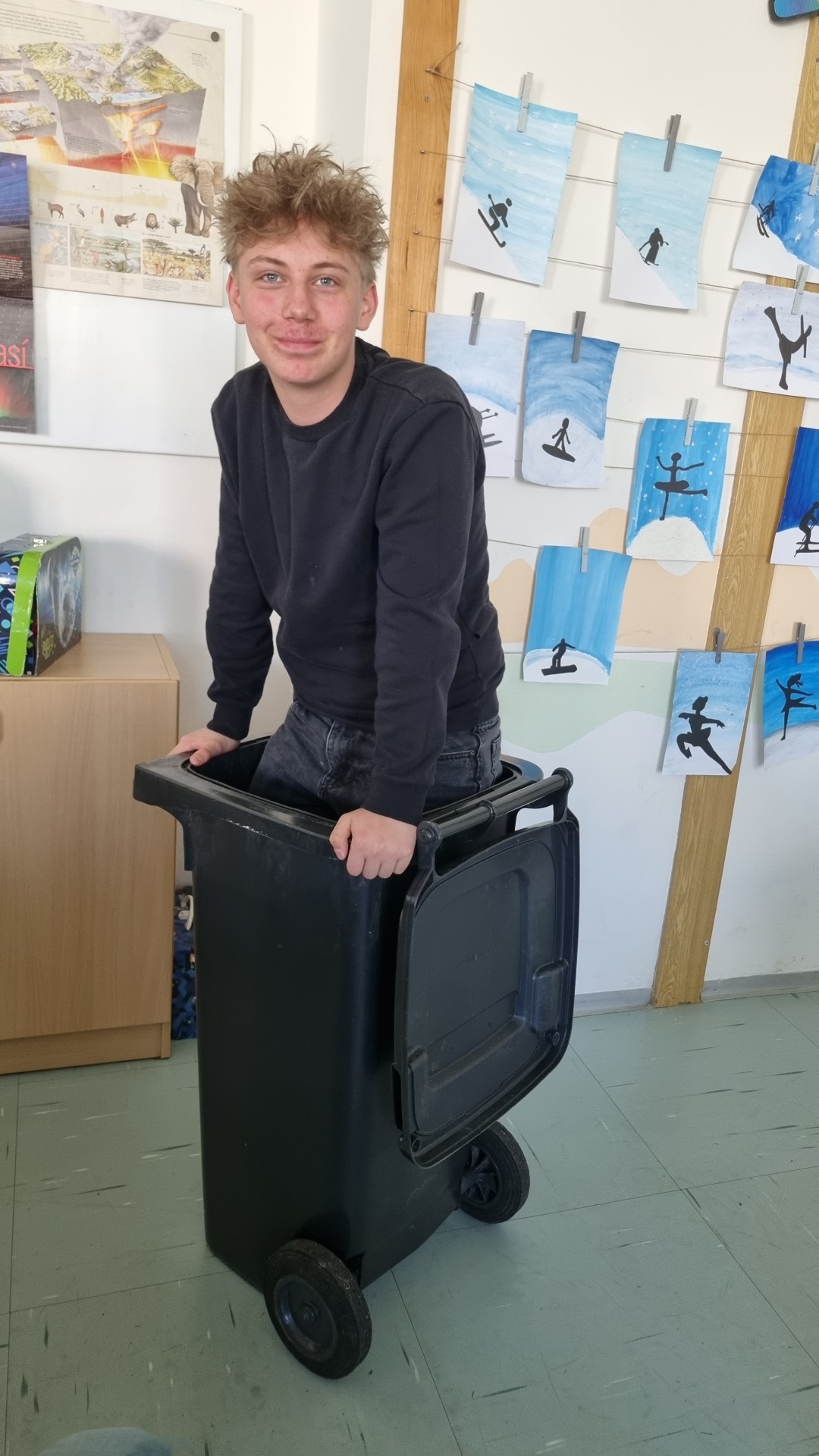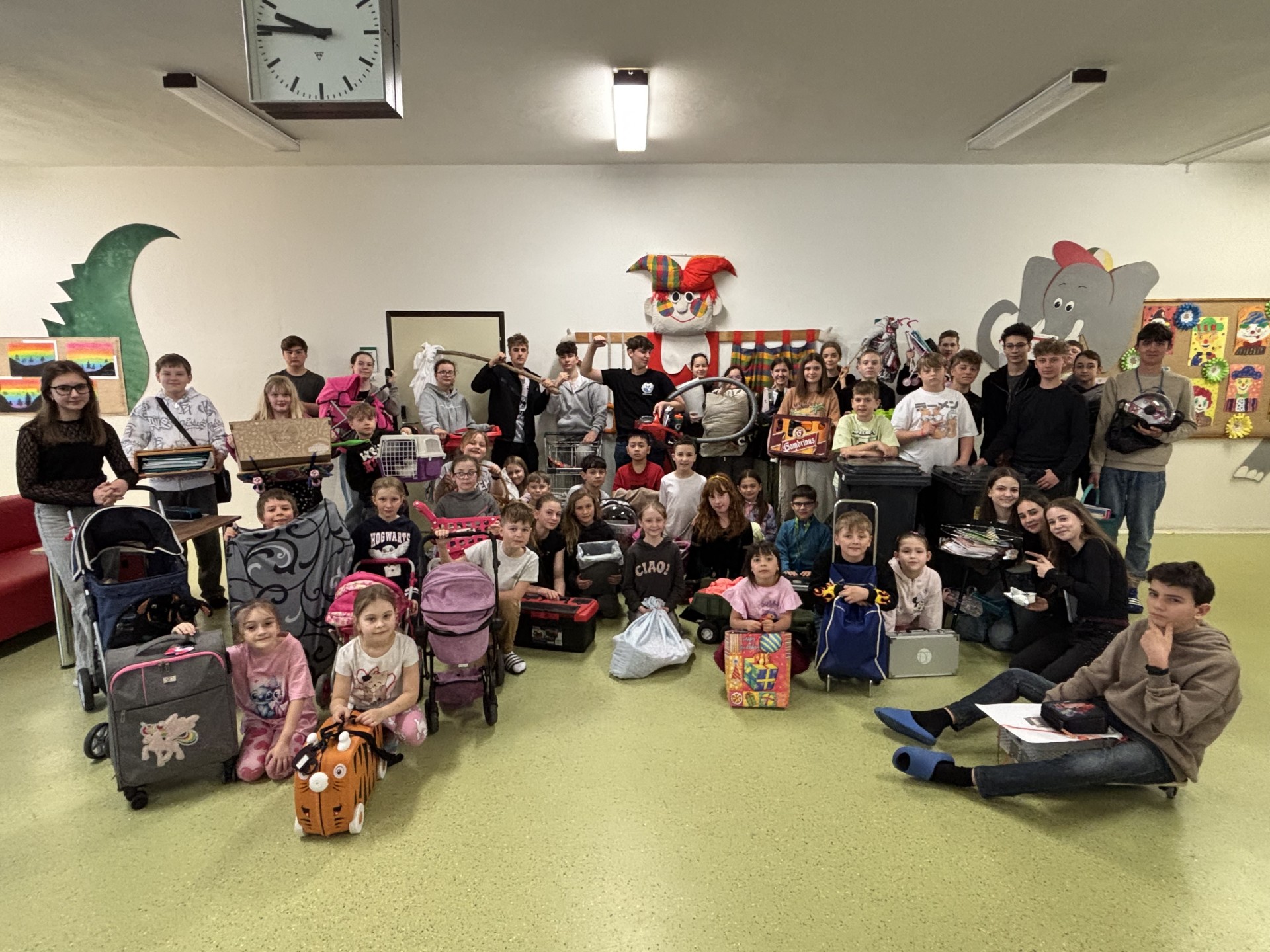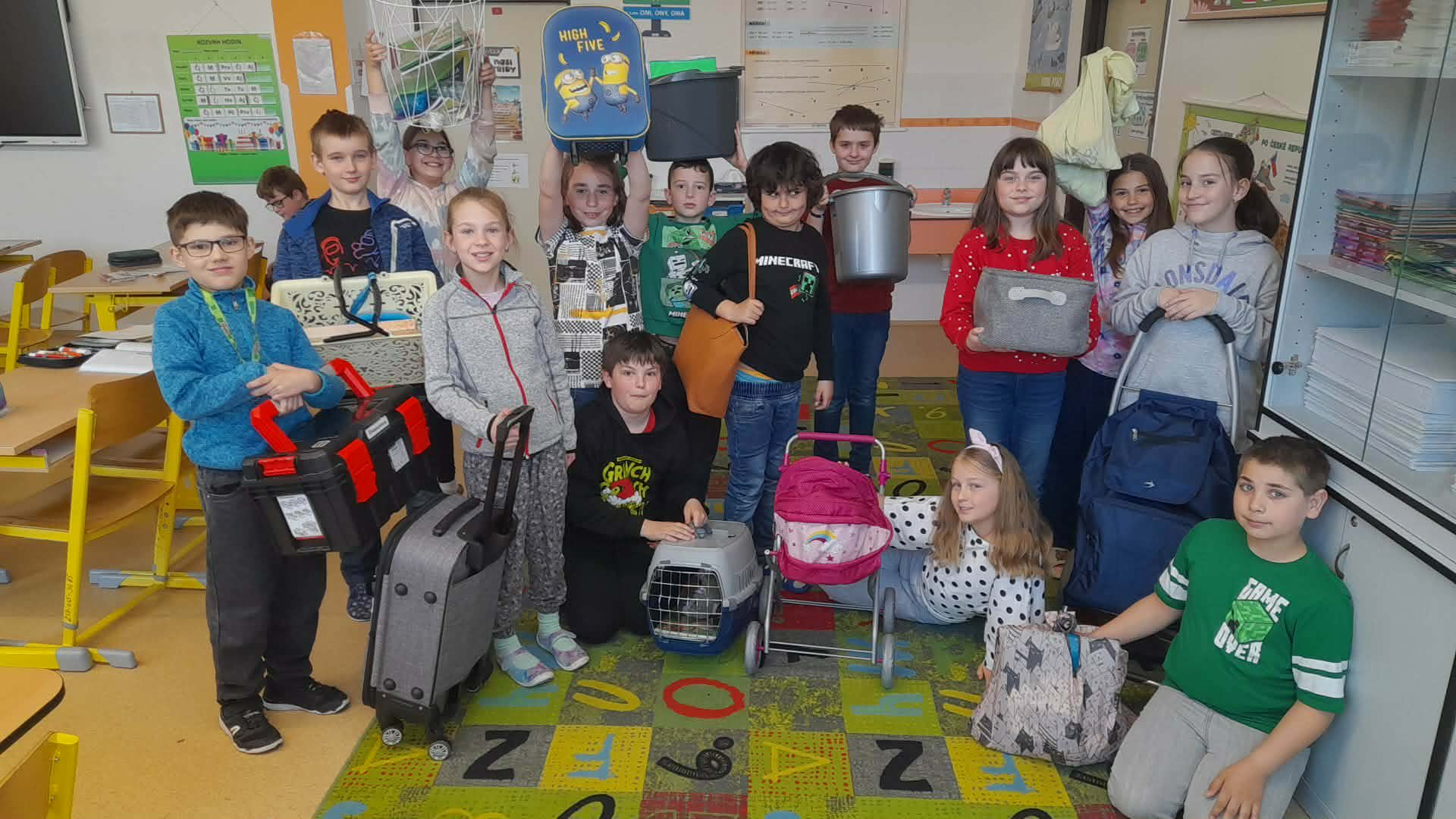 Velký úspěch zaznamenal také páteční „No bag day“, tedy den bez aktovek. Žáci dostali možnost přinést si své pomůcky v čemkoli jiném než ve školní tašce. Fantazii se meze nekladly – objevily se koše, kufry, krabice, ale i velmi netradiční řešení. Tento den přinesl spoustu smíchu a originálních nápadů.