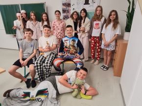 Čtvrtek se nesl v duchu pohodlí – proběhl totiž „Pyžamový den“. Ten se stal jednoznačně nejoblíbenějším. Škola se proměnila v místo plné županů, plyšáků a pohodové nálady. Přestože by se mohlo zdát, že v pyžamu se učí hůře, opak byl pravdou – výuka probíhala standardně, jen v uvolněnější atmosféře.
